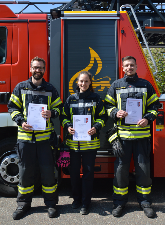 Aileen Keller-Buldanikas, Christian Schork und Manuel van Deinsen stehen nun aktiv der Einsatzabteilung zur Verfügung und rücken ab sofort bei allen Einsätzen mit aus. Die Kameradinnen und Kameraden der Freiwilligen Feuerwehr Neckarzimmern freuen sich sehr über die Verstärkung und gratulieren recht herzlich zum Lehrgangserfolg. Wir wünschen allen drei viel Spaß im aktiven gemeinsamen Einsatzdienst.